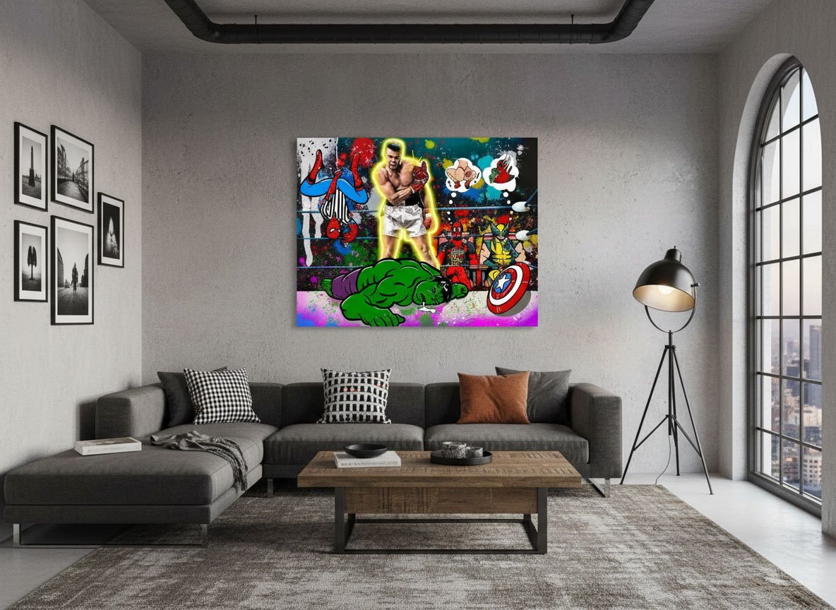 La stampa pop‑art “Superhero Wrestling” aggiunge colore e personalità ai tuoi ambienti. Realizzata su tela o carta di alta qualità, questa opera è perfetta per chi vuole stupire con uno stile moderno e ironico.