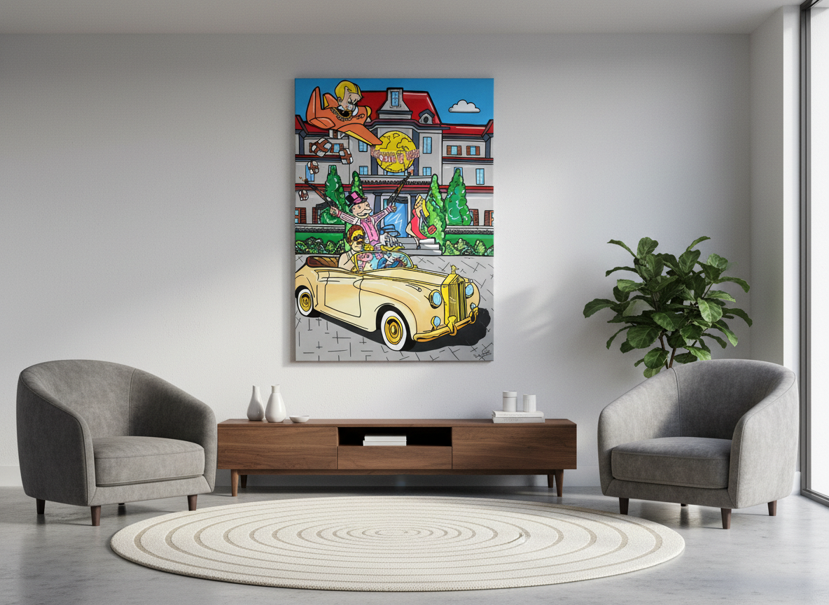 Questo dipinto a mano su tela celebra lo stile pop attraverso scene luxury e personaggi iconici. I colori vivaci e l’ironia che permeano l’opera rendono ogni dettaglio un’esperienza visiva unica, perfetta per aggiungere personalità ai tuoi spazi.